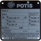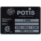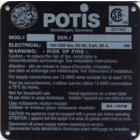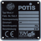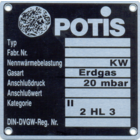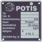 Our original POTIS Gyros-Grill bears a type label stating the particulars of the manufacturer, both on the motor andon the basic component. The label for the gas grills bears the test mark n° CE - 0085 AQ 0859